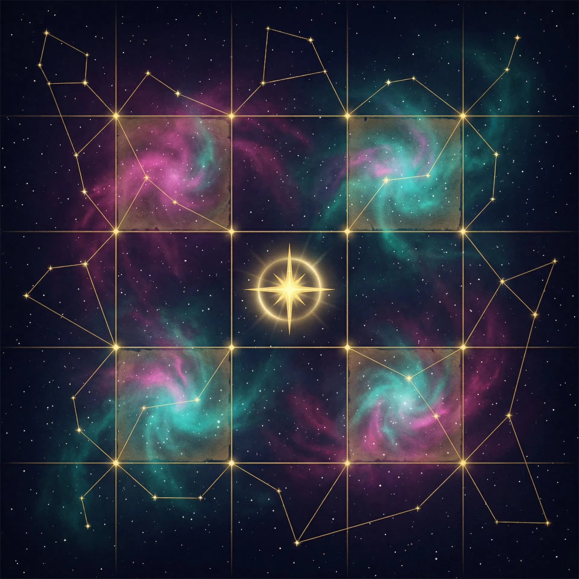 A bingo-style scavenger hunt for GHC 2026 that weaves code challenges, AI content creation, and collaborative networking into a 5×5 star-map board. Teams of four solve challenges together, building real connections aligned with GHC's pillars.